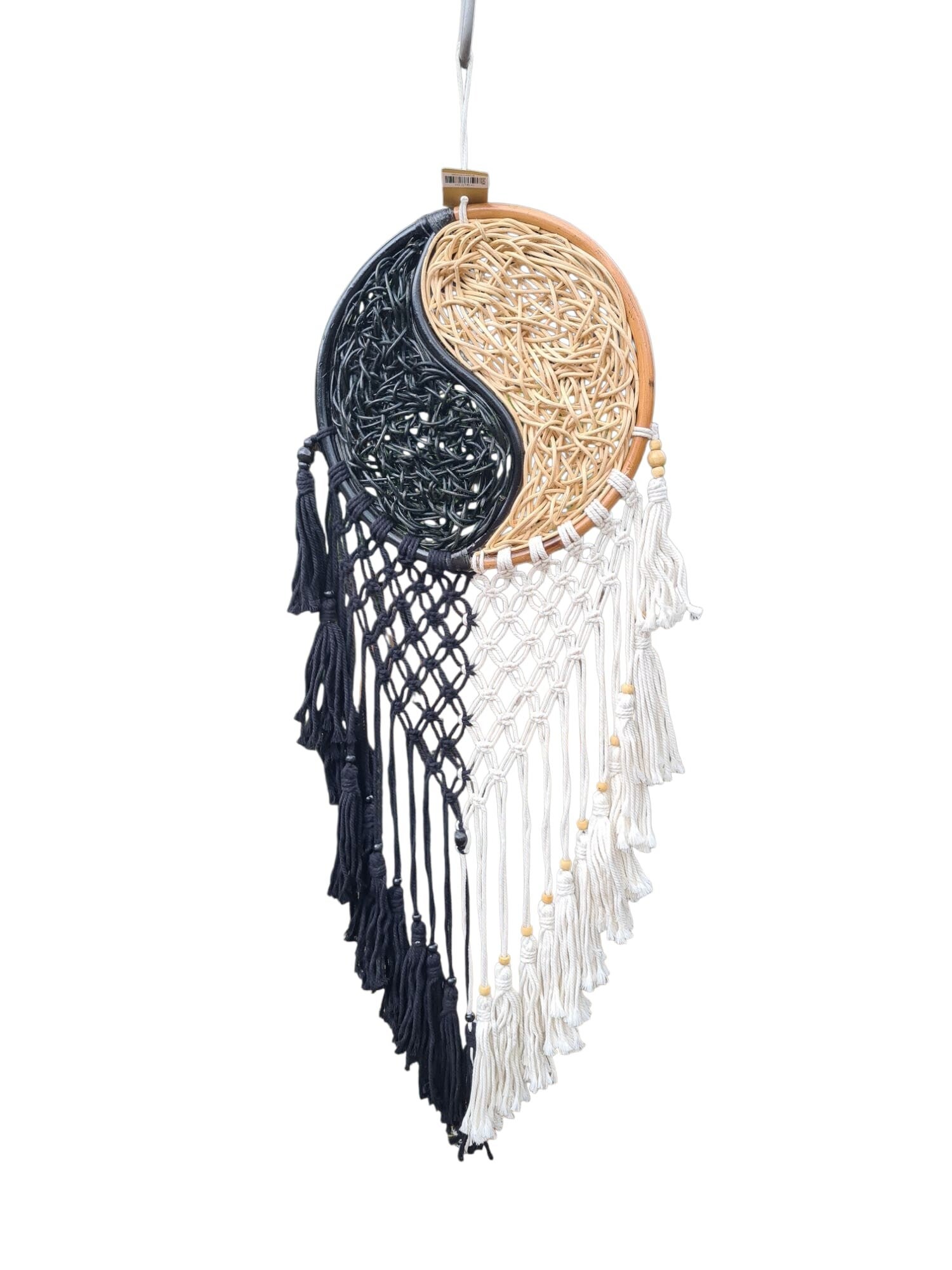 Ying Yang hanger van macrame en pitriet.