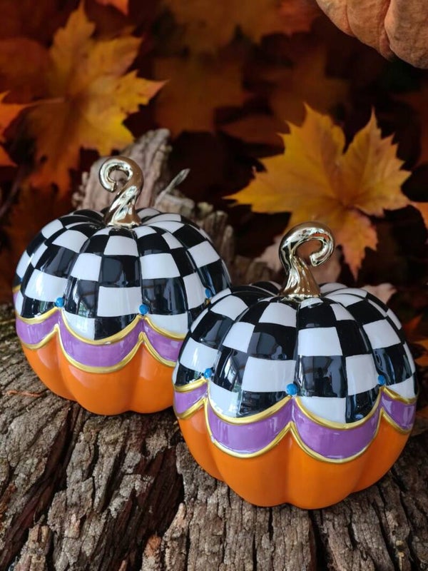 Pompoen van keramiek met ruimte om lichtje in te doen.